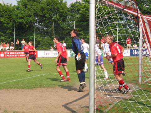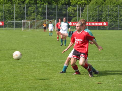 | Marco Steinmann , 20.05.2003 | | | Spielbericht 1. Mannschaft | 27. Spieltag | DSC Arminia Bielefeld II - VfL Theesen 6:2 | 08.05.2003 | | | | Noch 9 Punkte zu vergeben | | |  12 FotosGegen die II. Amateure des DSC lag der VfL schon mit 4:0 zur Halbzeit zurück, so dass das Spiel schnell entschieden war. In dieser Phase tauchten die starken Arminen immer wieder blitzartig vorm Theesener Tor auf, was die Defensivabteilung des VfL nicht verhindern konnte. Zum Ende des Spiels konnte der VfL an Raum gewinnen und das Spiel gestaltete sich offener mit je 2 Toren auf beiden Seiten. ...mehr |